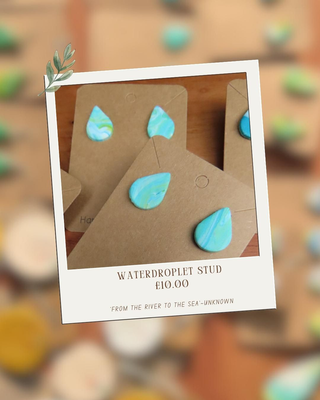 Marble water droplet stud with diamonds